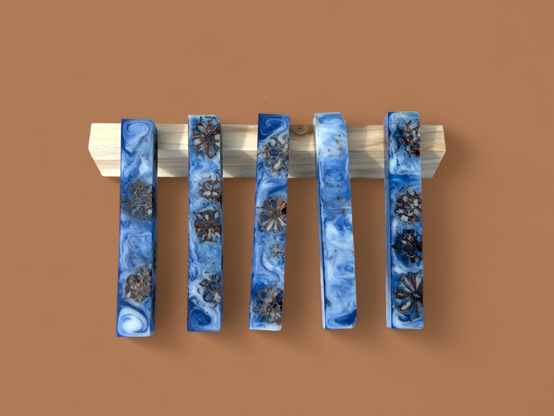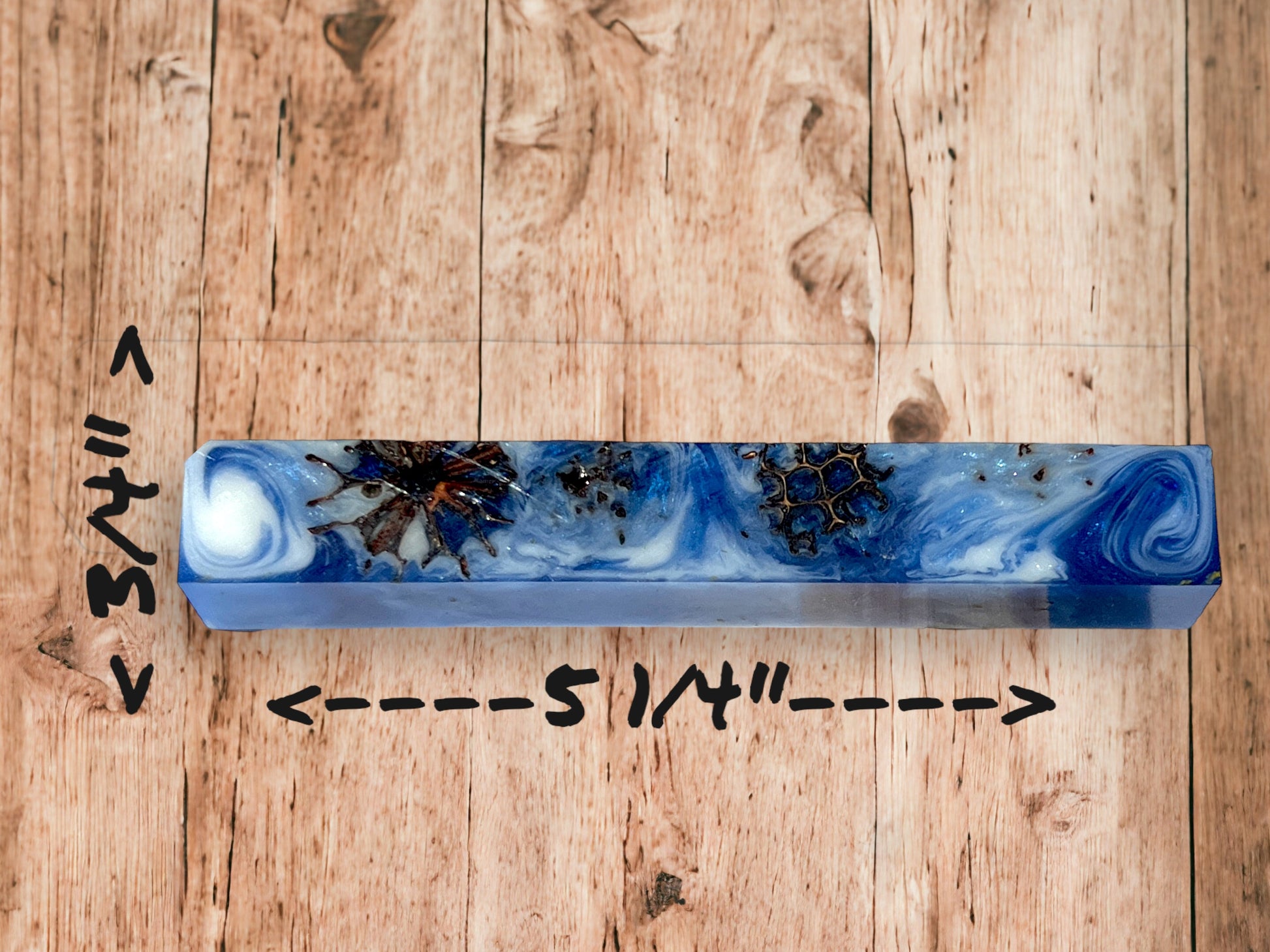 Material: Alumilite Resin, Sugargum Tree Seed Pods, Blue Mica Powder, White Dye with Pearlescent powder.