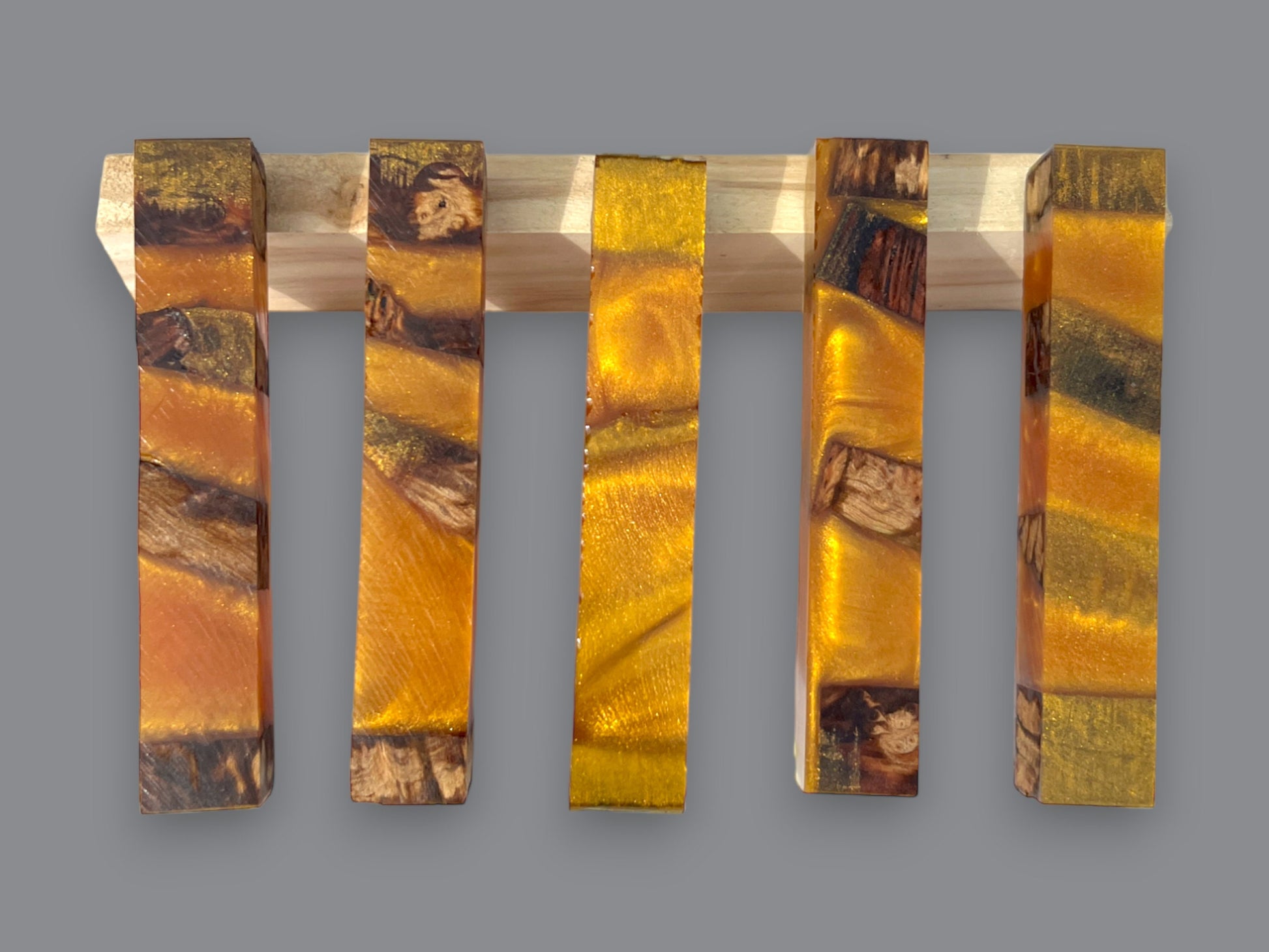 Material: Alumilite Resin, Wood Burl, Gold Mica Powder