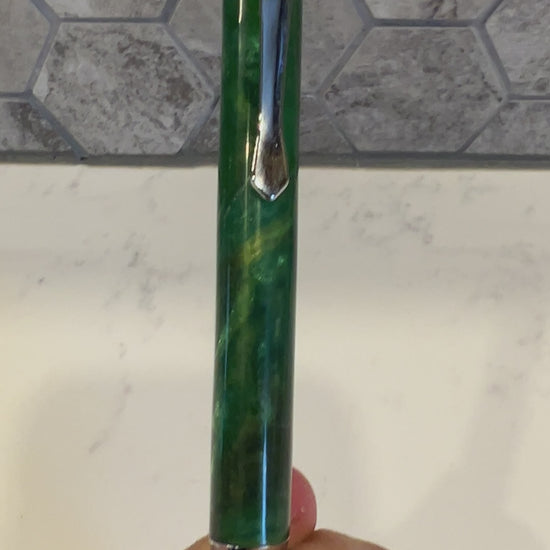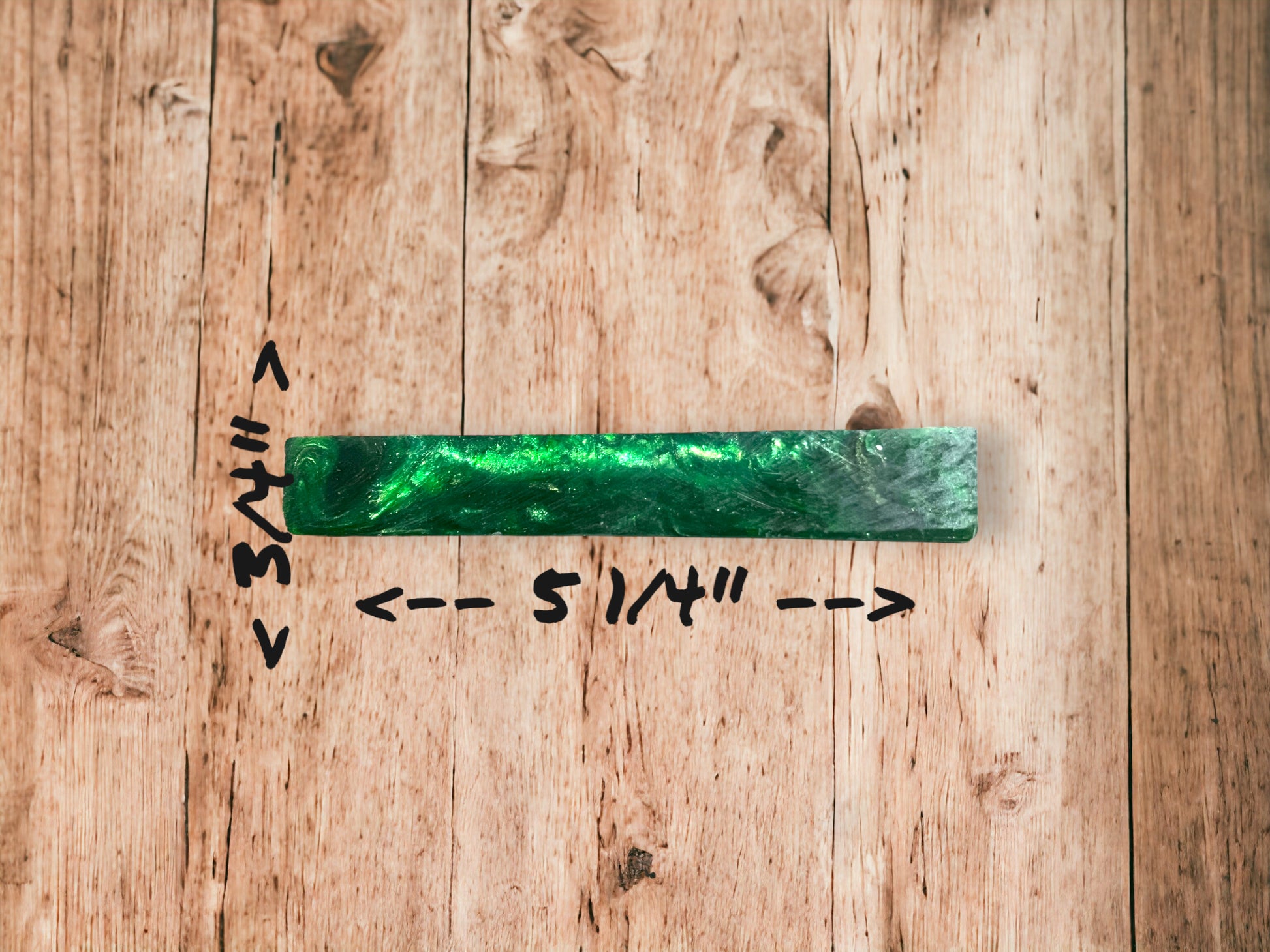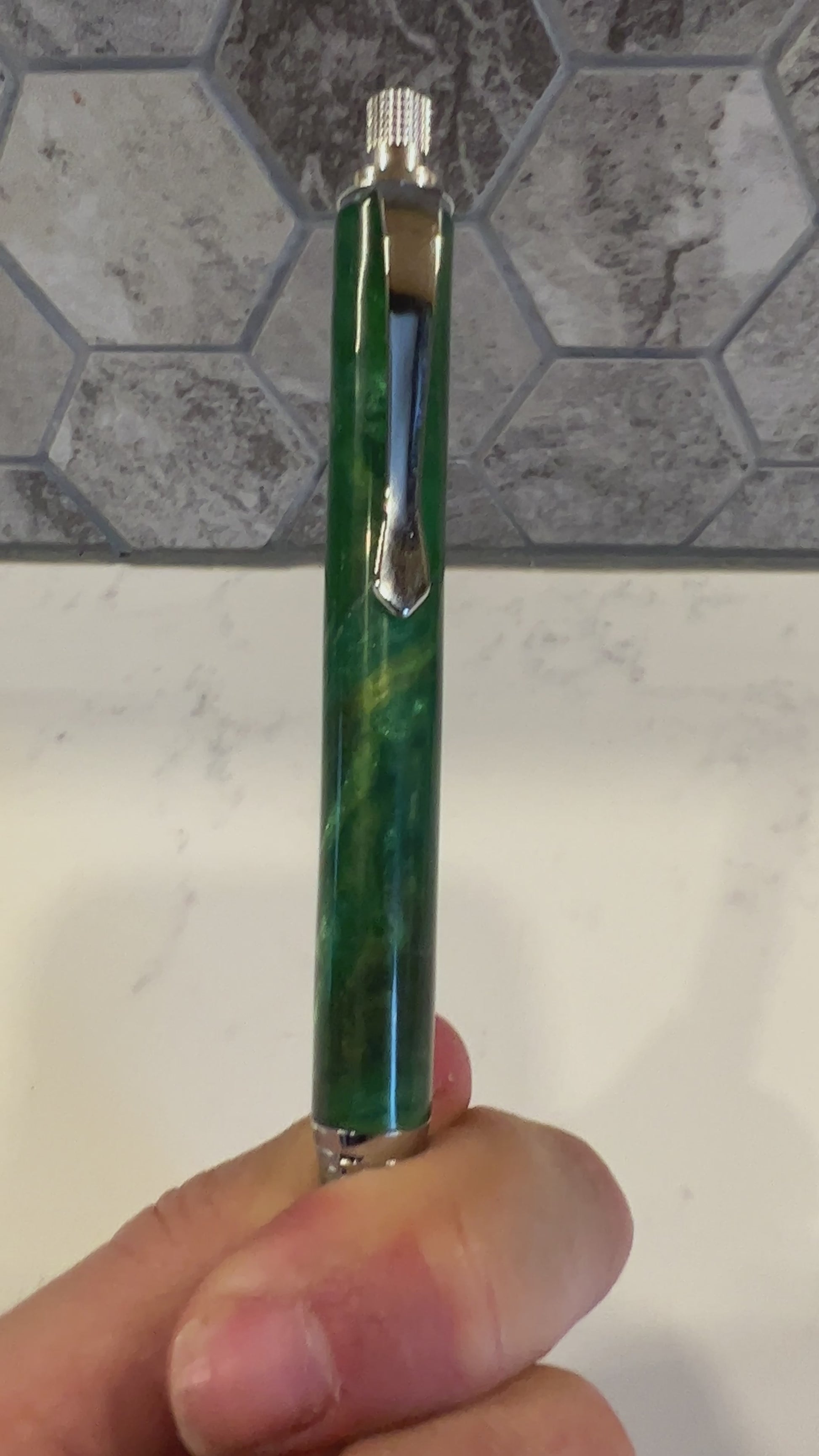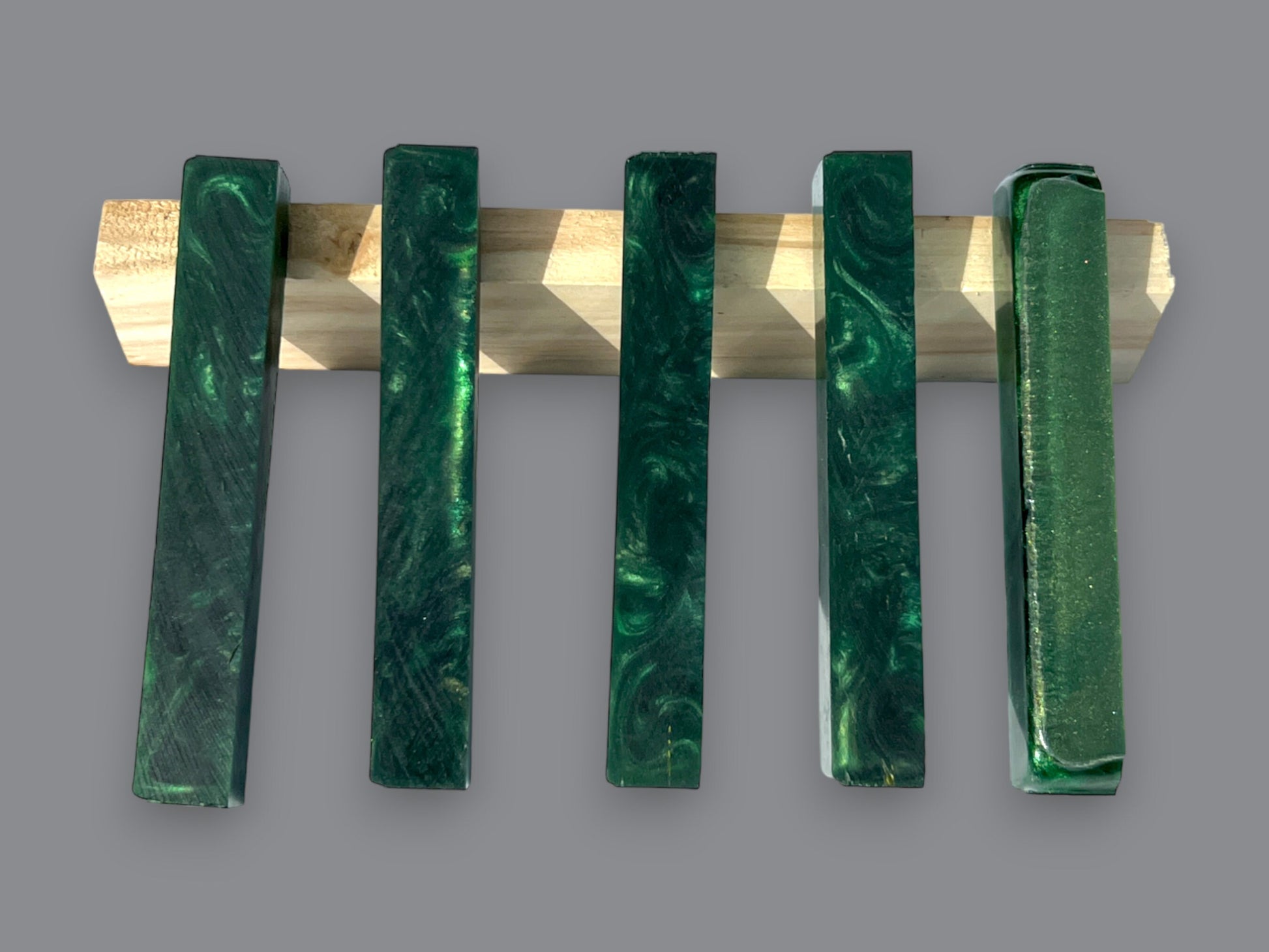 These gorgeous Green Lantern pen blanks are inspired by green light of will. They are different shades of green with a nice green sparkle and sheen to them as you can see in the picture. You can see what the blanks look like once turned in the picture and video of the sketch pencil that I turned.